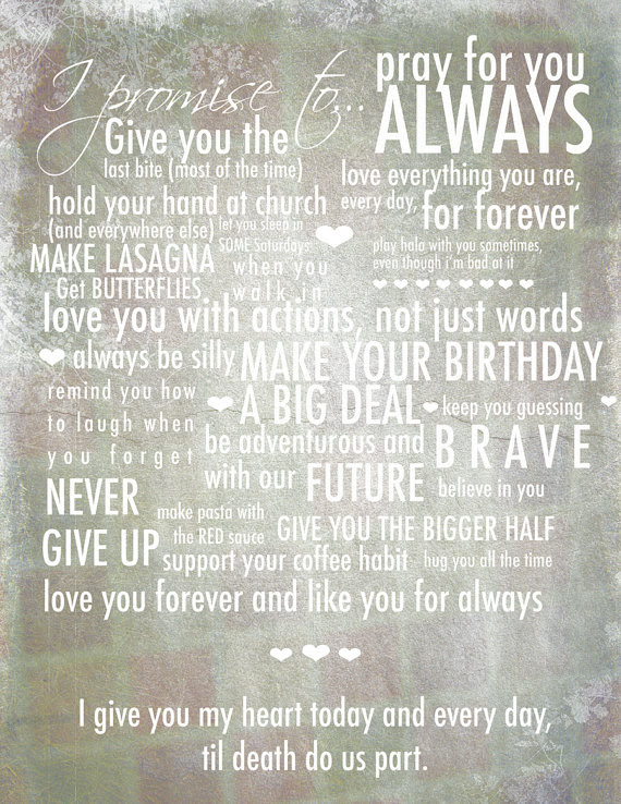 Below are two suggested ideas for wedding vows but don't just copy them add your own words, change things around and make them your own.